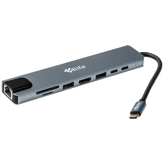 4LIFE Hub USB-C FL8A 8 En 1 USB/USB-C/HDMI/SD Space Gray