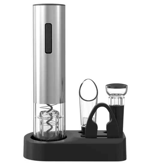 Abridor de Vinhos Elétrico Eficiente: Este conjunto inclui um abridor de vinhos elétrico eficiente, projetado para abrir suas garrafas com facilidade e rapidez. É perfeito para festas e encontros, economizando tempo e esforço.
