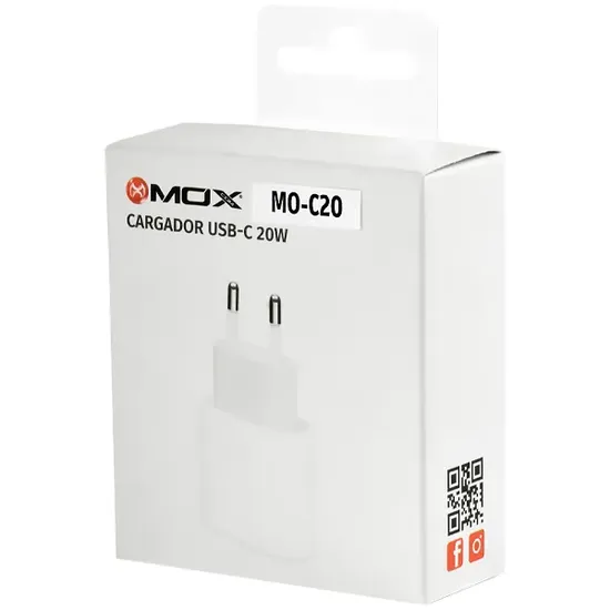 Adaptador de Tomada Mox MO-C20 USB-C de 20 Watts - Branco