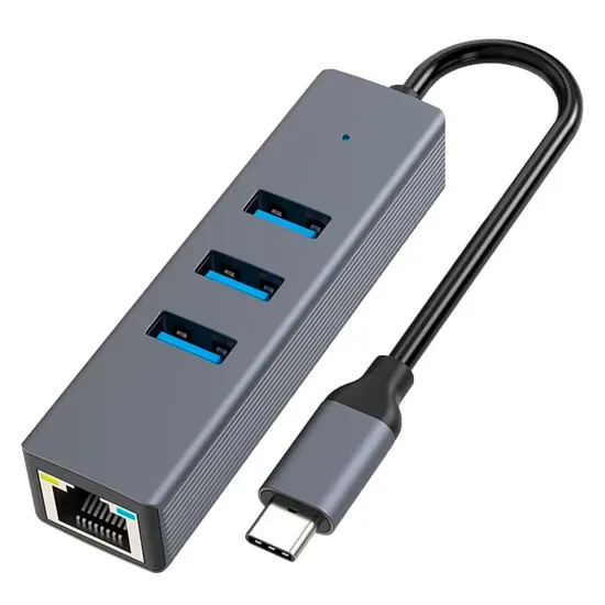 Adaptador Hub USB-C RJ45 USB 3.0 4 Em 1 - Cinza