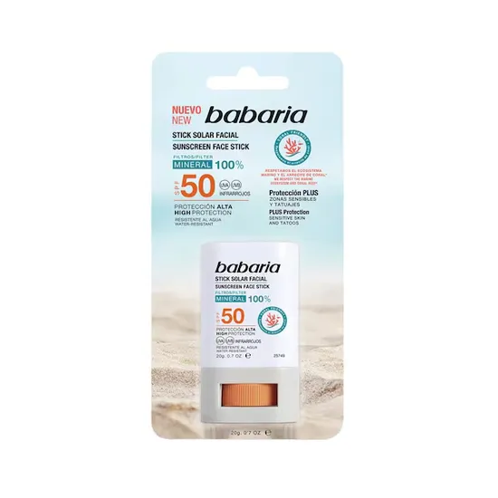 Compra online válida apenas dentro do Paraguai.Babaria Stick Solar Facial SPF50 20ML