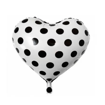 Balao para Festas Coracao com Bolinhas H94 Brancopreto