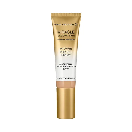Compra online válida apenas dentro do Paraguai.Base Max Factor Miracle Touch Second Skin SPF20 07 Neutral Medium 30ML
