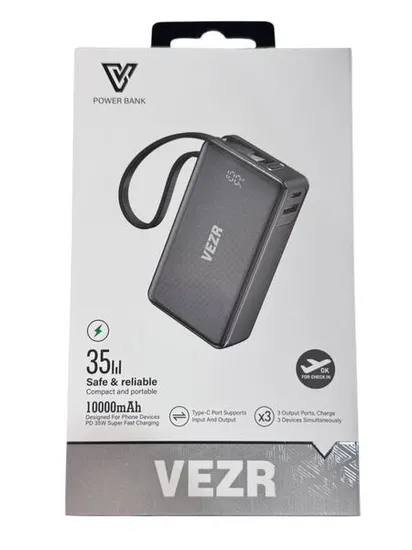 Bateria Externa (10000MAH) VP01 35W Preto Vezr