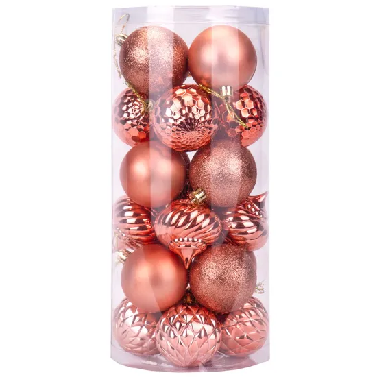 Bola de Natal Rosa Em Diferentes Tons e Texturas 6CM 24 Peças.