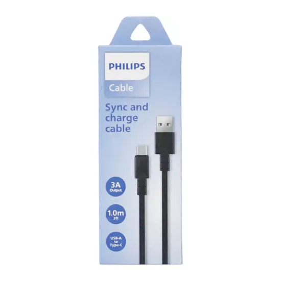 Cabo Philips DLC3001AB/70 - USB-A/USB-C - 1 Metro - Preto