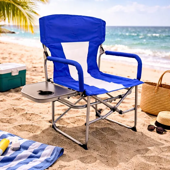 Cadeira Dobrável Azul Impermeável com Porta-Copos 57X50X94CM