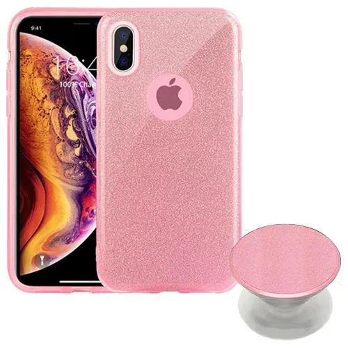 Capa 4LIFE Glitter para iPhone X com Popsocket Material Tpu/PC - Rosa
