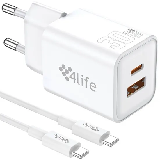 Carregador 4LIFE FL8530ACGW USB/USB-C de 20 Watts + Cabo USB-C