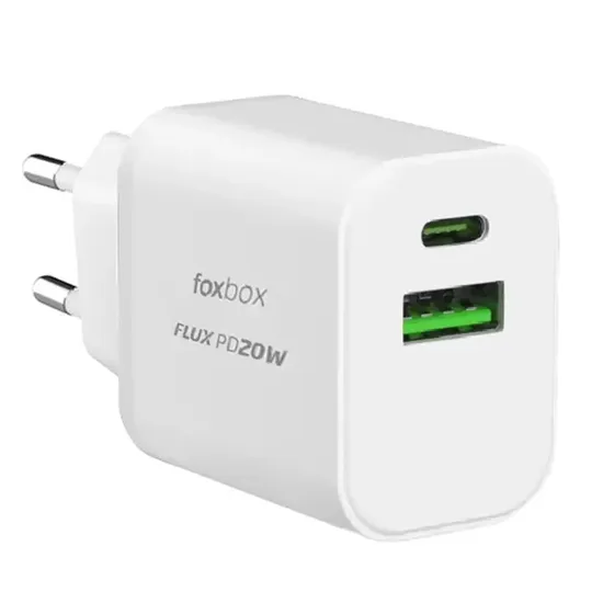 Carregador Foxbox Flux PD20W USB+Tipo C - Branco (Caixa Feia)