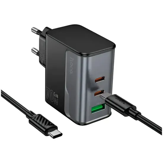 Carregador Hoco CS75A 70W USB-C+USB-A com Cabo - Preto