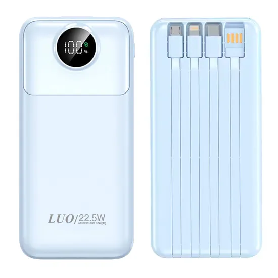 Carregador Portátil Powerbank Luo LU-6085 / 12000MAH / 22.5W / USB X2/ USB-C / com Cabo Embutido Lightning - USB - USB-C - Micro USB - Azul Claro