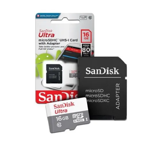 Cartão de Memória Sandisk Micro SDHC 16GB/80MBS com Adaptador Classe 10