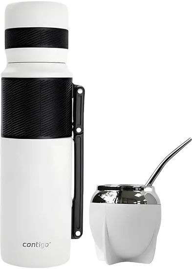 Compra online válida apenas dentro do Paraguai.Combo Matero Contigo Garrafa Térmica 1.18L + Cuia + Bomba - Branco