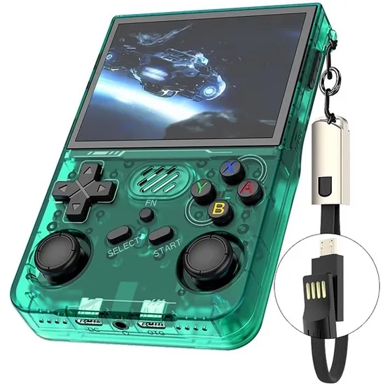 Console Portátil R36XX 128GB de 3.5" com 21.000 Jogos - Verde Transparente
