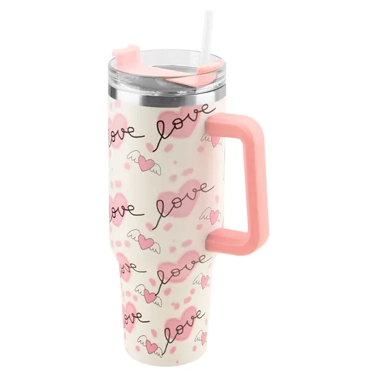 Copo Térmico Quencher A208 - 1200ML - com Canudo - Branco com Rosa