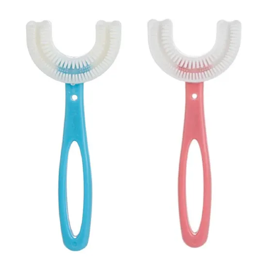Escova de Dentes de Silicone Infantil Formato Em U 360º Grande - Cores: Azul Ou Rosa