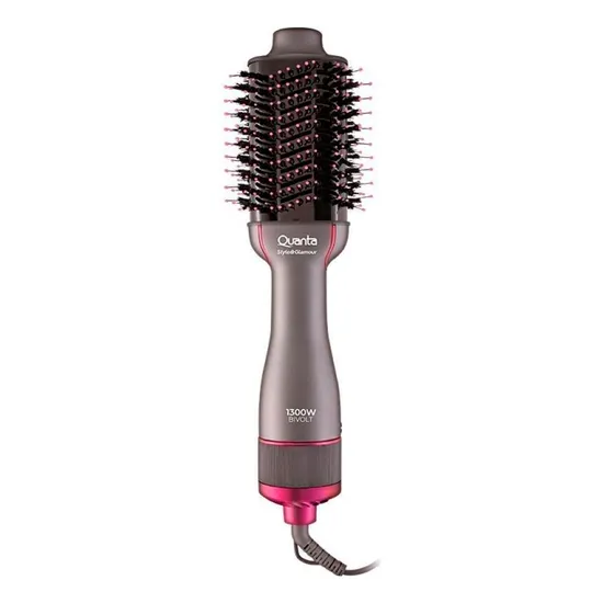 Escova Secadora Quanta Style&Glamour QTES6000N - 1300W - com Suporte - Bivolt - Cinza e Rosa