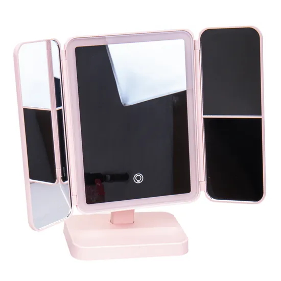 Espelho LED Toucador Dobrável c/Armazenamento Rosa