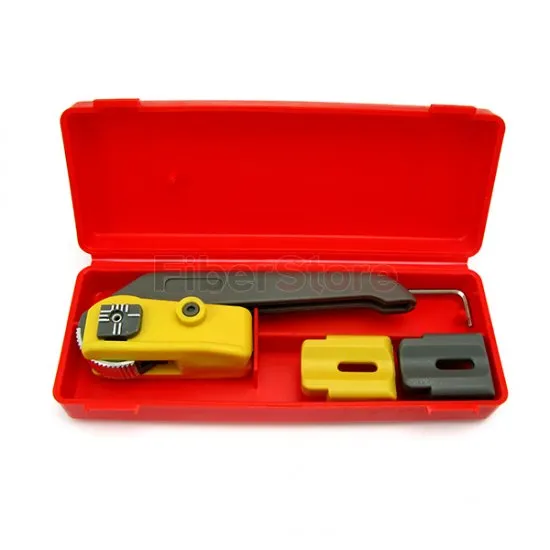 E também tem peças encaixáveis ??adicionais para cortar cabos de fibra óptica e cabos com pequeno diâmetro disponível.