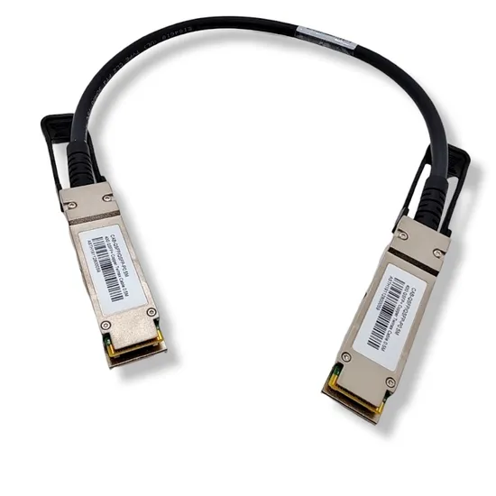 Cabos de conexão direta de cobre QSFP + são adequados para distâncias muito curtas e oferecem uma maneira altamente econômica de estabelecer um link de 40 Gigabits entre portas QSFP + de switches QSFP + dentro de racks e através de racks adjacentes. Esses cabos são usados para os padrões 40GbE e Infniband para maximizar o desempenho