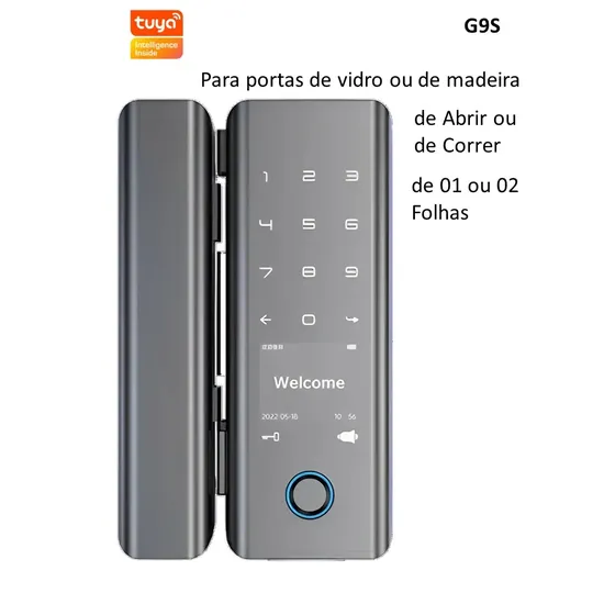 Fechadura Digital G9S Wifi Tuya/USB/Cartão p/Vidro Cinza