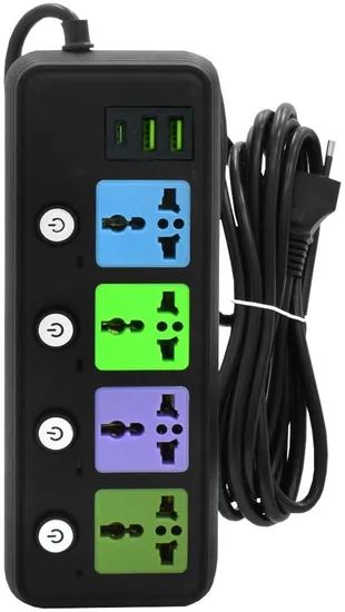 Compra online válida apenas dentro do Paraguai.Filtro de Linha Sate A-R342U 4 Tomadas/USB/USB-C (2 Metros)
