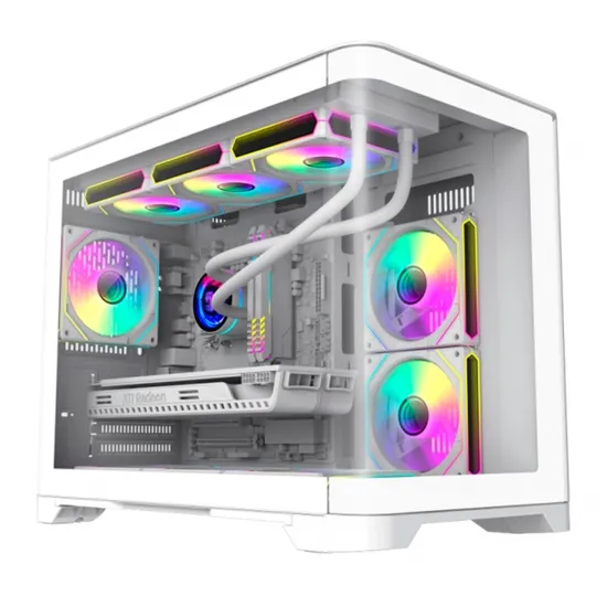 Compra online válida apenas dentro do Paraguai.Gabinete Gamer, Aquario, Gamemax Hype-M, Midi Tower, Argb, M-ATX, Frontal e Lateral Vidro Temperado, 3X Fans, Branco 120MM Argb
