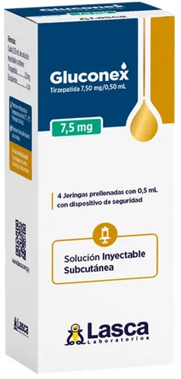 Especificações de Gluconex Tirzepatida 7,5MG/0,50ML (4 Seringas Pré-Cheias)