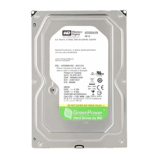 Especificações de HD Western Digital Pull 500GB/ SATA3 / 3.5"/ 64MB 5400RPM - (WD5000AURX)