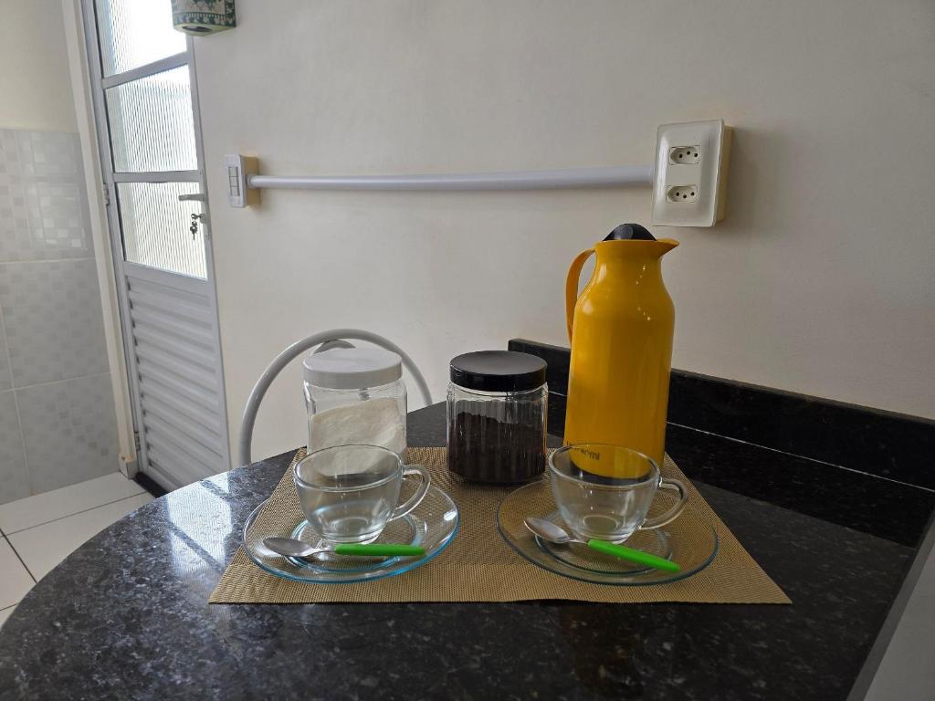 A casa de temporada conta com 2 quartos, 1 banheiro, roupa de cama, toalhas, TV de tela plana com canais via satélite, espaço para refeições, cozinha completa e varanda com vista para a cidade.