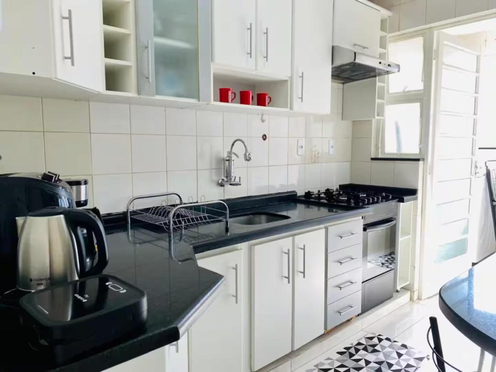 Apartamento completo, bem localizado com Ar cond, garagem e WI-FI oferece um parquinho infantil.