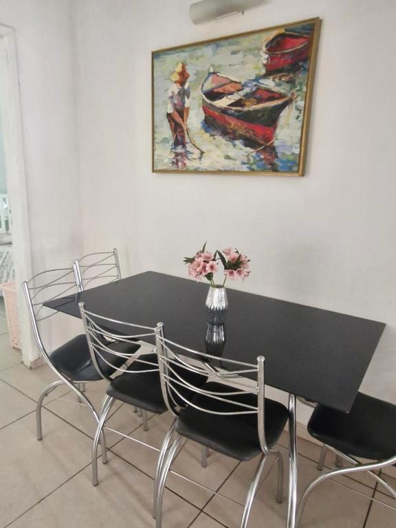 A casa de temporada com ar-condicionado conta com 2 quartos, uma cozinha e 3 banheiros. Você terá TV de tela plana à sua disposição.