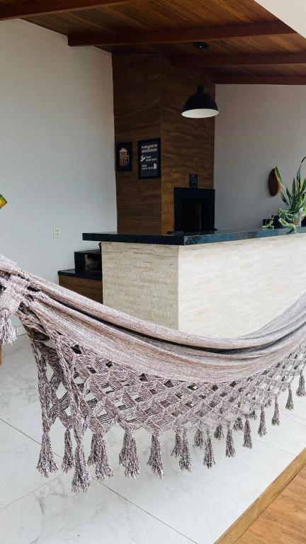 A casa de temporada tem 2 quartos, cozinha completa e 2 banheiros.