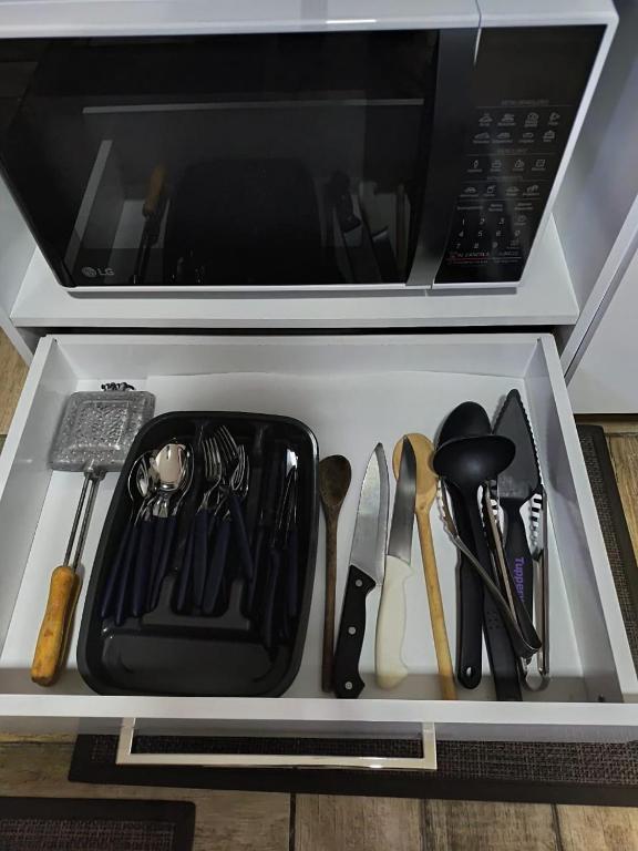O apartamento tem 1 quarto, cozinha completa e 1 banheiro. Você terá TV de tela plana à sua disposição.
