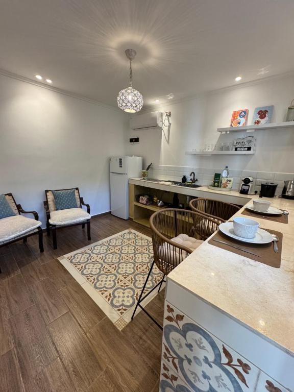 Este apartamento possui 1 quarto, cozinha compacta com geladeira e torradeira, TV de tela plana, área de estar e 1 banheiro com chuveiro. O apartamento oferece toalhas e roupa de cama.