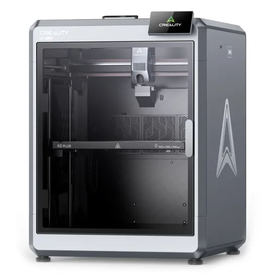 A Creality K2 Plus é uma impressora 3D de alto desempenho com amplo volume de construção de 350 × 350 × 350 mm. Com arquitetura CoreXY reforçada, ela atinge velocidades de até 600 mm/s e aceleração de 30.000 mm/s². Possui estrutura robusta, nível automático, compatibilidade com múltiplas cores via sistema CFS e suporte para materiais exigentes. Ideal para makers e profissionais que buscam velocidade, precisão e versatilidade.