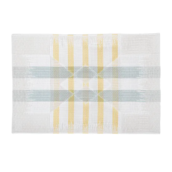 Individual Retangular de Tecido Xadrez Branco-Negro-Amarelo