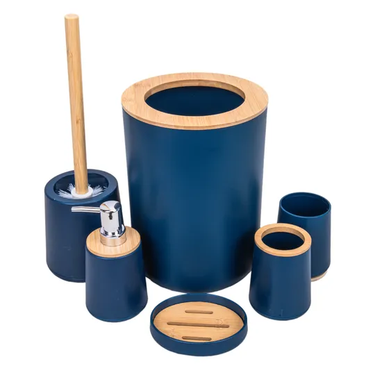 Jogo de Banho Plastico com Bambu 6 Peças - Azul