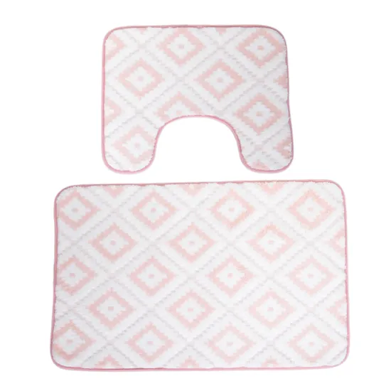 Jogo de Tapete Felpudo para Banheiro 2 Peças - Rosa