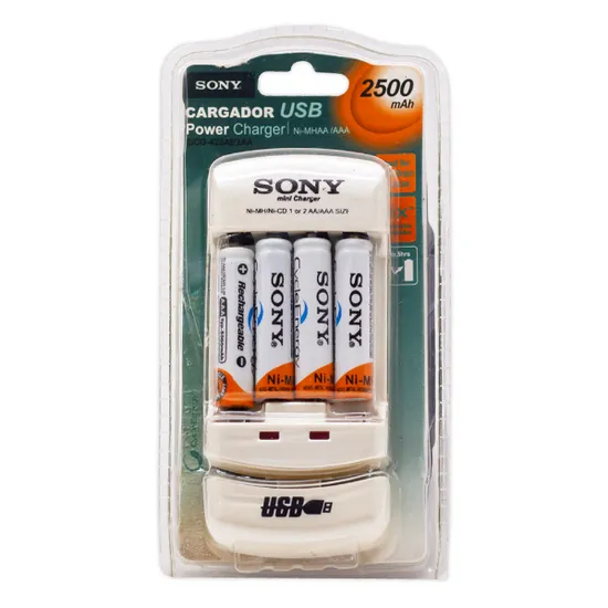 Especificações de Kit Carregador de Pilhas Sony BCG-423AE2AA / 2500MAH / com Pilha Incluida (4 Pilhas AAA) / para Pilha AAA e AA / Bivolt - Branco
