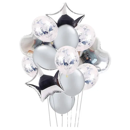 Variedade de Texturas: O kit combina balões de látex de alta densidade com balões de Foil (metalizados) e balões com confete, criando um contraste visual moderno e elegante.