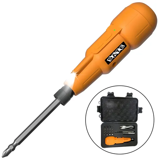 Kit Parafusadeira Elétrica Sate A-TK81 com 18 Acessórios/Recarregável/800MAH - Laranja