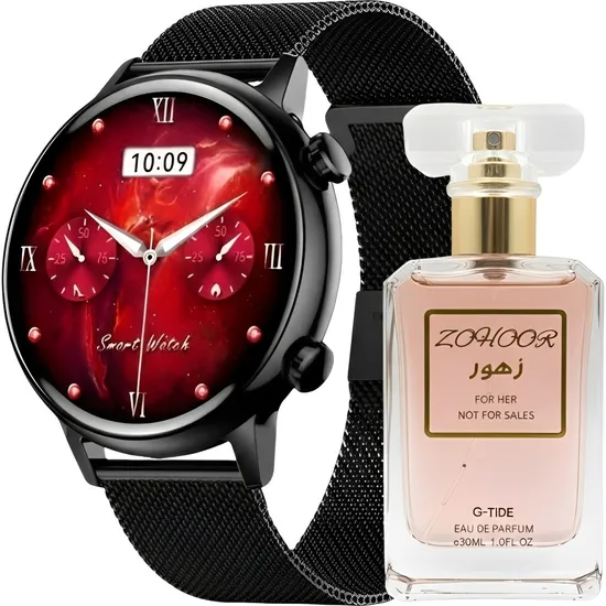 Kit Relógio Smartwatch G-Tide Lady Time Romance - Preto + Perfume Zohoor Edp - 30ML