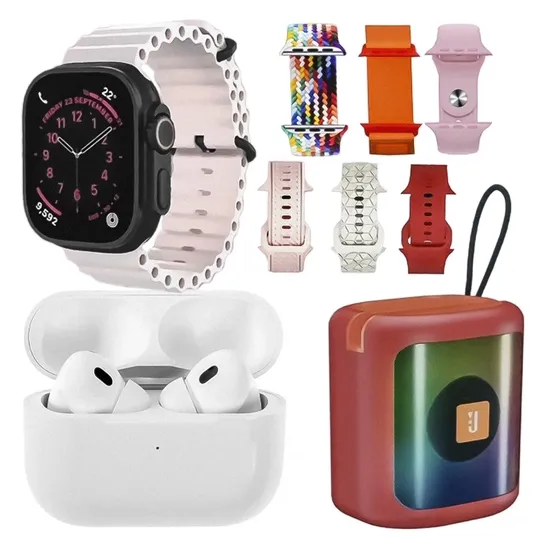 Kit Smartwatch K28 49MM + Fone de Ouvido + Speaker Rosa