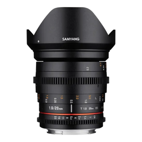 A Samyang 20mm T1.9 ED AS UMC é uma lente de cinema grande angular de foco manual projetada para câmeras DSLR com sensor full frame. O fluxo de luz foi desenvolvido considerando a distância única entre o vidro e o sensor em câmeras mirrorless, garantindo desempenho ideal.