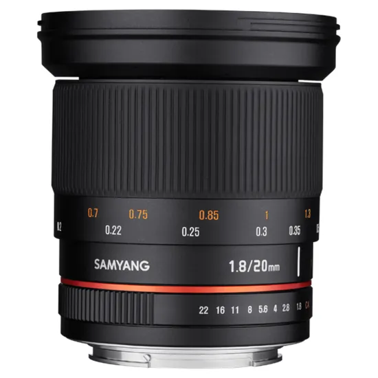 A Samyang 20mm F1.8 é compatível com 9 montagens de câmera: Canon EF, Nikon F, Pentax K, Sony A, Canon M, Fujifilm X, Samsung NX, Sony E e MFT.