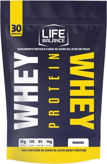 Compra online válida apenas dentro do Paraguai.Life Balance Whey Protein Banana - 1KG