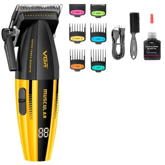 Maquina de Cortar Cabelo VGR Voyager V-285 / 9000RPM / Recarregavel - Preto/Amarelo