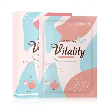 Vitality with Pomegranate: Máscara antienvelhecimento. Previne os sinais de envelhecimento, como perda de elasticidade, linhas finas e rugas.